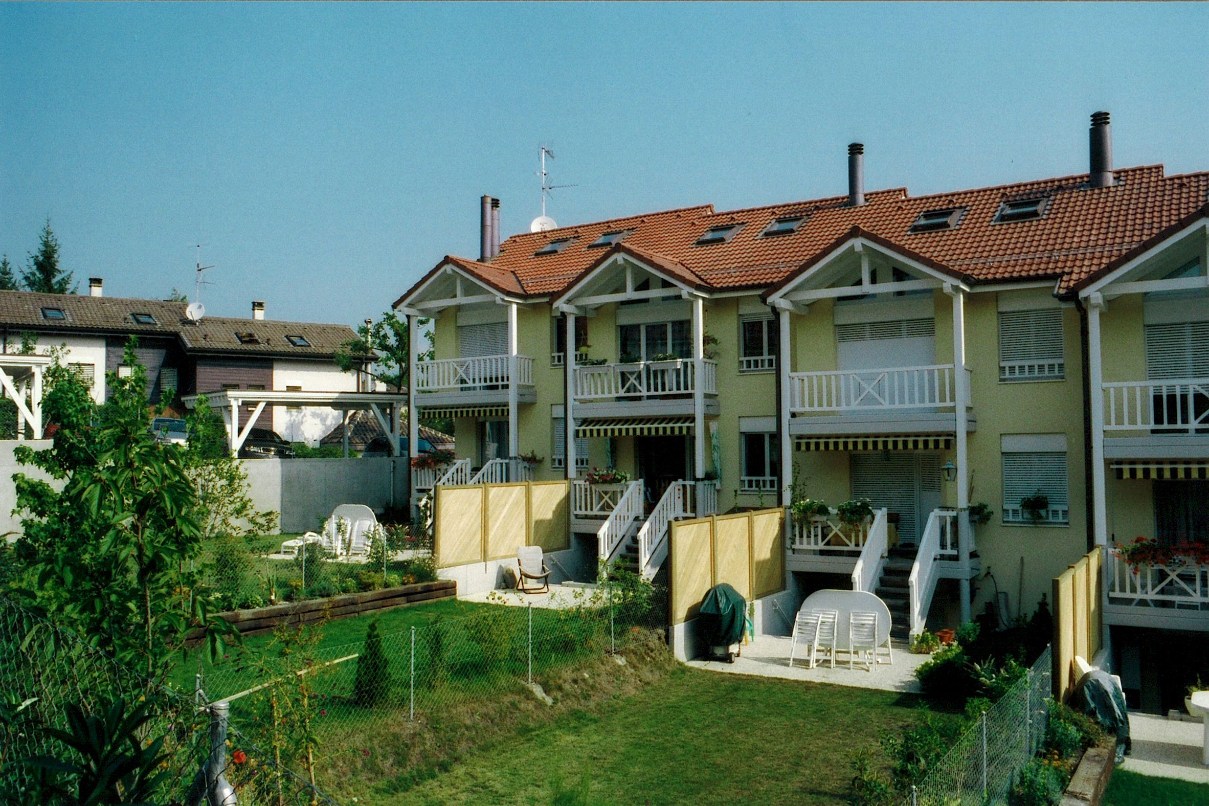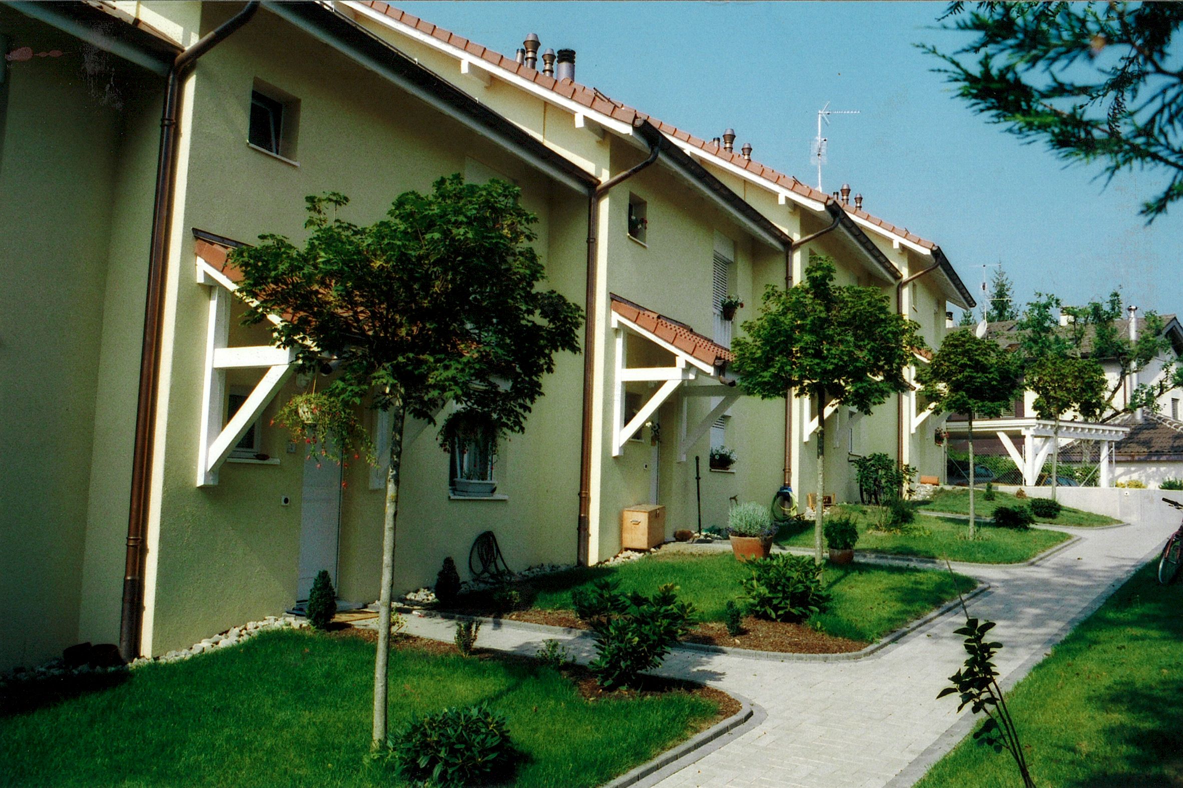Sur ce terrain ont été construites 5 villas contigües qui complètent une 1ère étape construite en 2000 comprenant également 5 villas contigües.