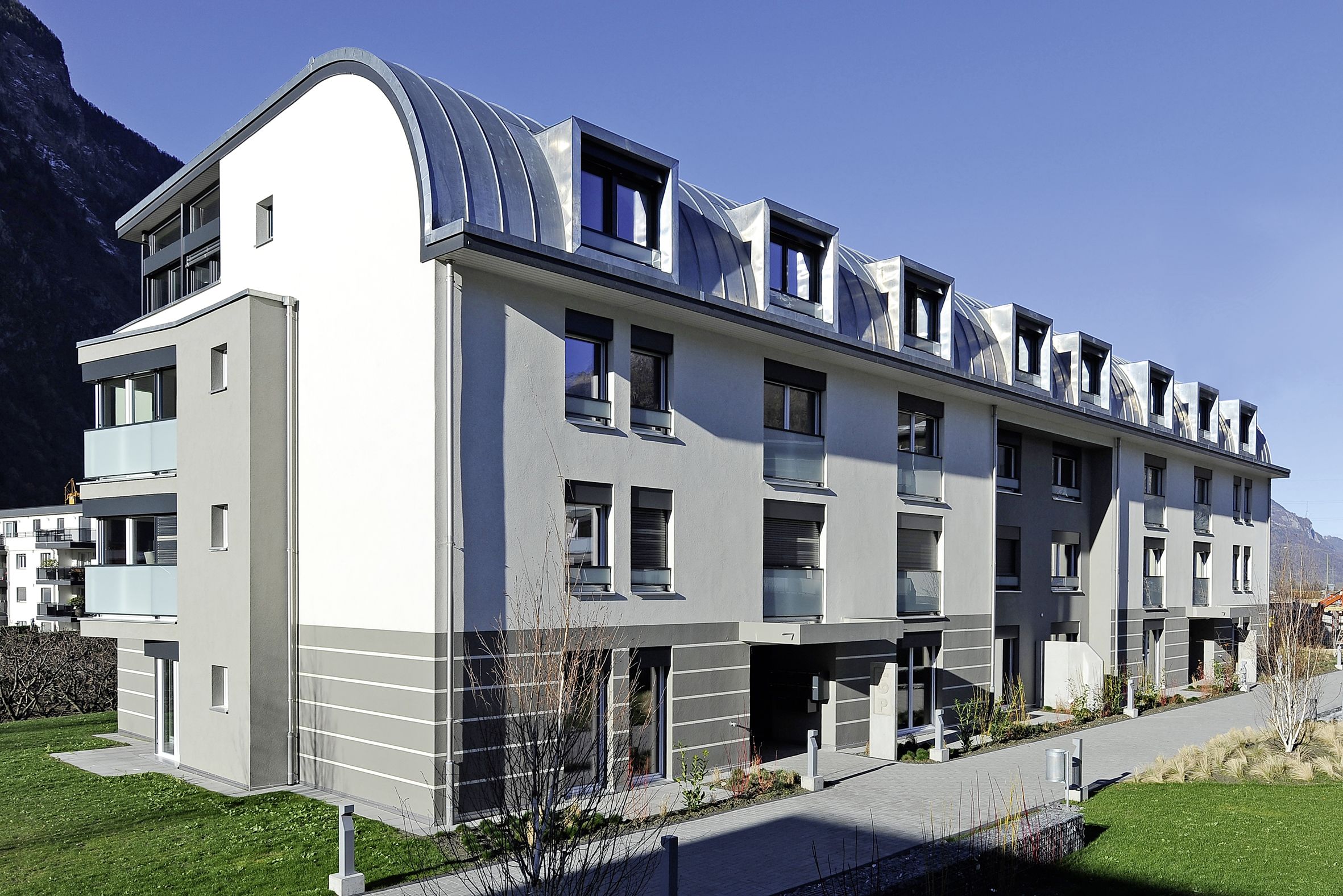 Ce projet de 16 immeubles totalisant 140 logements et quelques surfaces commerciales, a été réalisé sur une magnifique parcelle de 15’000 m2 jouxtant la Dranse.