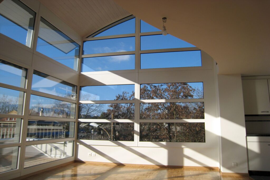 Sur une parcelle en pente orientée plein sud ont été construits 2 immeubles comprenant 4 commerces et 20 logements traversants. En deuxième front et compte tenu de la déclivité et de la profondeur de la parcelle ont été construites six villas urbaines de type loft. Elles ont été projetées et conçues pour proposer des habitations résolument modernes et spacieuses. Certaines de ces villas en duplex possèdent un patio intérieur situé au premier étage qui, en plus d’éclairer naturellement les chambres, donne également de la lumière sur la cuisine se trouvant au rez-de-chaussée.